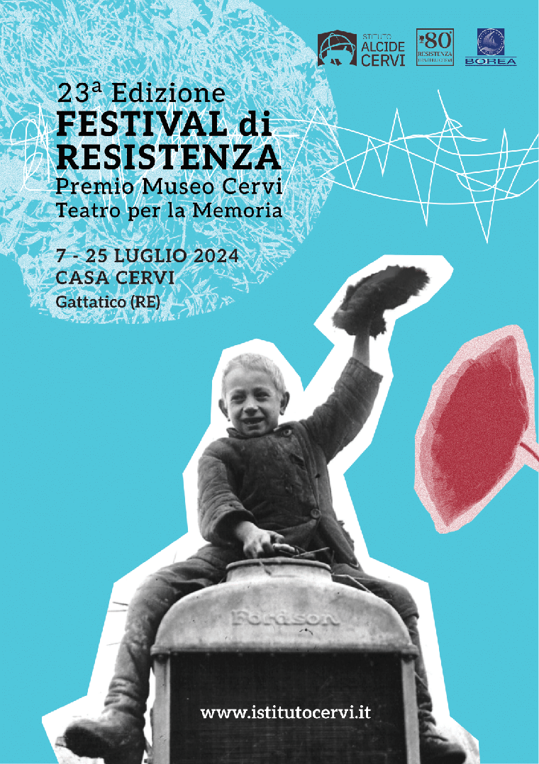 Giunge alla 23ª edizione il Festival di Resistenza che si svolgerà dal 7 al 25 luglio negli spazi esterni di Casa Cervi, rassegna di teatro civile contemporaneo, ideata e promossa da Istituto Alcide Cervi (qui il programma completo) insieme a Boorea Emilia Ovest, con il sostegno di Proges e Conad Centro Nord, con i patrocini di Regione Emilia-Romagna, Provincia di Reggio Emilia, Provincia di Parma, Comune di Parma, Comune di Reggio Emilia, Restate, Comune di Campegine, Comune di Gattatico, Università di Parma, Fondazione I Teatri di Reggio Emilia.