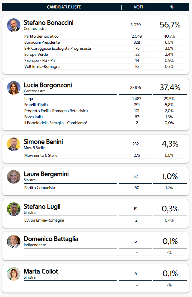 Non sarà che l’essere mostri è contagioso e che in quel paese c’è una cospirazione popolare per nasconderli? I mostri? No. Il punto è che l’Emilia Romagna è troppo civile per farsi convincere dai giustizialisti con gli altri e garantisti con loro stessi, con chi per opportunismo politico fa strami di convivenza civile, verità e dignità altrui. Di chi semina odio per chiedere “pieni poteri” e si autoassolve violando silenzi elettorali e regole in sfregio a chi le regole le rispetta. Ai cittadini dell’Emilia Romagna, e non stupisce nemmeno che Borgonzoni non lo sappia ricordandosi dove ne ha fissato i confini, non piace essere tirati per la giacchetta e tantomeno essere comandati a bacchetta. Né cedono facilmente alle lusinghe liberticide. Magari ascoltano ma poi, pragmaticamente, fanno quello che ritengono utile fare. Ecco tutto. E mentre in calce trovate la scheda elettorale con i risultati pubblicata da Repubblica, aspettiamo che Borgonzoni ci riparli di Bibbiano…