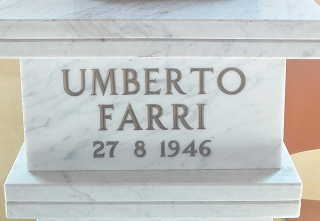 In occasione dell’anniversario dell’attentato avvenuto il 26 agosto 1946, una delegazione dell’amministrazione comunale composta dal sindaco, dal Presidente del Consiglio Comunale e da diversi consiglieri di maggioranza e minoranza, poseranno giovedì 27 agosto alcuni garofani sulla tomba dell’ex primo cittadino Umberto Farri.